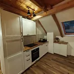 En el Apartamento Hisa Sturm hay una cocina con un lavaplatos, una nevera y un horno.